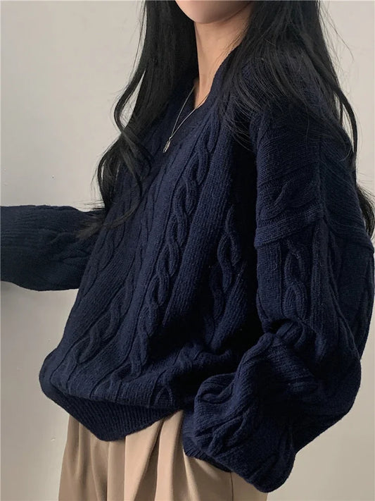 Realeft | Oversize striktrøje med V-hals